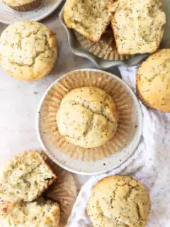Jammy blueberries and the tartness of lemon elevate classic poppy seed muffins into something special. These are great for making ahead and freeze well–perfect for busy back to school mornings!